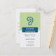 A stylised deep blue ear sits against a subtle pinstriped light green background. Perfect for otolaryngologists, audiologist or just about any business dealing with the ear and/or hearing. Leave the back as is with appointment information or customise it to your liking. Available in alternate colours with matching products.