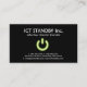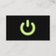 A cool plain ICT business card with a elegant green glowing Standby or "on and off" symbol on a dark light trail background.