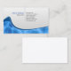 This elegant professional business card design features an off white top with a wavy lower half. Beneath this wavy border lies a grungy watercolor wash pattern in blue hues. Your name and title appear in the white top half on the left, and your contact details on the right. Both of these text elements are separated by a grey line that runs from the centre top and ends in the middle of the card. Perfect for copywriter, administrator, design, art, artistic, designer, elegant, professional themes. The generic nature of the design means it can be used as a business card for almost any business or industry.