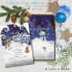 The back features a playful snowman hiding behind a snowy hill with a matching blue scarf, welcoming the "newest little neighbor" to the community.