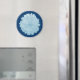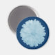 This pretty magnet features a photograph of a marigold flower that has been manipulated to make it an icy pale blue colour. The flower sits on a dark blue background.