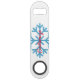 Crochet-style blue knit snowflake design to customise or personalise by changing to your name on any background colour