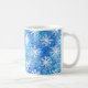 A cheerful icy blue & turquoise winter theme with dazzling white snowflakes pattern on coffee mug.