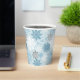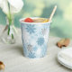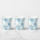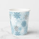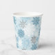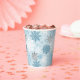 Let your party guests dine in style with these icy blue snowflake themed paper cups that feature a blue, white, and silver glitter snowflake pattern!