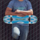 Chill out with the Icy Mirage Reflection skateboard. Featuring mirrored blue and silver-grey teardrop shapes with hints of green, this design blends symmetry and softness in a cool, eye-catching palette. A great pick for skaters who want a clean, serene, and stylish ride.