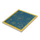 Ceramic tile with Abstract gold foil contours flowers on dark turquoise background and gold foil frame. Vintage floral pattern. Silhouettes of flowers on white background. Minimal style floral background ceramic tile. Icy Tenderness Collection.