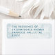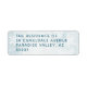 A snowy wintery woodland scene with your name and return address written in bright turquoise blue