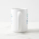 A cute coffee mug for the baker in your life with "I'd rather be baking" in a fun retro font with illustrations of rolling pins and a whisk in blue.