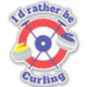 Fun sticker reading I'd rather be Curling, with brooms, target (house), and stones. Perfect for curlers, curling coaches and ice sports fans.