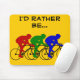 I'd rather be cycling design features 3 cyclists in red, blue and green speeding across the mousepad. Text is in template form so can be changed very easily.
