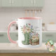 Coffee mug featuring the wording "I'd Rather Be Gardening" above a watercolor illustration of a bouquet of flowers in a pair of green wellies and a a flowers planted in a flower box. Perfect for the passionate gardener. Additional rim and handle colors and styles available.