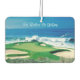 Air freshener shown with a photo print of a beautiful golf course by the ocean and a scent of tropical breeze.