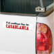 I'd Rather Be In Casablanca! Are you from Casablanca, Morocco? Do you have a friend or family member who loves Casablanca, Morocco? If so, this "I'd Rather Be In..." bumper sticker is what you're looking for! The design features "I'd rather be in" in small black lettering at the top and "Casablanca" in big red lettering at the bottom.