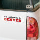 I'd Rather Be In Denver! Are you from Denver, Colorado? Do you have a friend or family member who loves Denver, Colorado? If so, this "I'd Rather Be In..." bumper sticker is what you're looking for! The design features "I'd rather be in" in small black lettering at the top and "Denver" in big red lettering at the bottom.