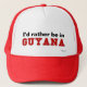 I'd Rather Be In Guyana! Are you from Guyana? Do you have a friend or family member who loves Guyana? If so, this "I'd Rather Be In..." hat is what you're looking for! The design features "I'd rather be in" in small black lettering at the top and "Guyana" in big red lettering at the bottom.