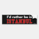 I'd Rather Be In Istanbul! Are you from Istanbul, Turkey? Do you have a friend or family member who loves Istanbul, Turkey? If so, this "I'd Rather Be In..." bumper sticker is what you're looking for! The design features "I'd rather be in" in small white lettering at the top and "Istanbul" in big red lettering at the bottom.