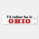 I'd Rather Be In Ohio! Are you from Ohio? Do you have a friend or family member who loves Ohio? If so, this "I'd Rather Be In..." bumper sticker is what you're looking for! The design features "I'd rather be in" in small black lettering at the top and "Ohio" in big red lettering at the bottom.