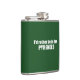 The flask itself is fine. It’s a cheap flask, obviously bought in bulk, however am prepared to overlook that. Given that it is a personalized item, I would have liked to have seen gift boxing instead of the generic packaging. Terrible printing, and/or quality. It’s a cheap, tacky vinyl. It is not cut straight and is also applied in a way that it is overhanging the bottom, causing the glue to catch on items and it will eventually roll and tear, damaging the wrap.