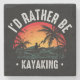 Colourful kayak design for anyone who loves kayaking, features a person kayaking on a turbulent river with text that reads I'd Rather Be Kayaking!