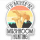I’d Rather Be Mushroom Hunting. This funny vintage distressed chanterelle mushroom design is a great mushroom hunter gift for men, women, kids & teens who love foraging, hunting and finding edible fungi like morels and chanterelles. Do you love to hunt for mushrooms? Are you into mycology, or are a mycologist? If you love going out into nature to forage & find mushrooms, this accessory is perfect for you! Has distressed graphic of chanterelle mushrooms set against a retro sunset.