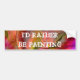 Bumper sticker with text "I'd rather be painting" and vivid, colourful design underneath the white letters.