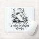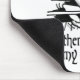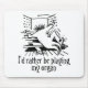 A mousepad with a cartoon showing the back view of an organist frantically playing away at the organ with the caption "I'd rather be playing my organ" written below. White background and image and text in black.