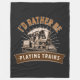 I'd Rather Be Playing Steam Trains Railroad Engine Fleece Blanket