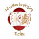 I'd Rather Be Playing Tichu Text Chinese Dragon Card Game Red Gold T-Shirt. Tichu is a partnership strategy card game modelled after a combination of the games Big Two and Zheng Fen (competing for points) popular in China. It is played with a standard deck of cards. I wanted to make a deck that was reminiscent of the games country of origin and so I stuck to gold and red as seen in many of the Chinese imperial architecture. I used styles form Chinese art on the cards as well. I wanted to keep a little bit of a retro vibe similar to some of the older martial arts movies. Game on!