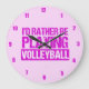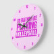 A funny volleyball clock in pretty pink writing for a womens volleyball coach or player. Cute volleyball humor gift for your team that reads I'd Rather be Playing Volleyball.