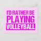 A funny volleyball postcard in pretty pink writing for a womens volleyball coach or player. Cute volleyball humour gift for your team that reads I'd Rather be Playing Volleyball.