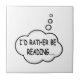I'd rather be reading. Cartoon speech bubble in black and white with funny quote.