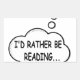 I'd rather be reading. Cartoon speech bubble in black and white with funny quote.