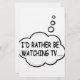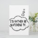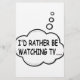 I'd rather be watching tv. Cartoon speech bubble in black and white with funny quote.