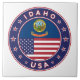 Badge of Idaho with flag of Idaho and flag of USA colours, rounded shape.