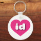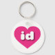 This key chain features a vibrant hot pink heart containing the bold, white, rounded lower case letters id, a playful abbreviation for Idaho, the gem state.