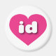 This magnet features a vibrant hot pink heart containing the bold, white, rounded lower case letters id, a playful abbreviation for Idaho, the gem state.