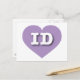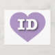 This postcard features a cool lavender heart containing the bold, white, upper case letters ID, the official abbreviation for Idaho, the gem state. The reverse side of the postcard is blank, awaiting your handwritten sentiments or customised text.