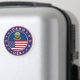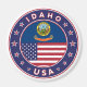 Badge of Idaho with flag of Idaho and flag of USA colors, rounded shape.