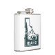 The flask itself is fine. It’s a cheap flask, obviously bought in bulk, however am prepared to overlook that. Given that it is a personalized item, I would have liked to have seen gift boxing instead of the generic packaging. Terrible printing, and/or quality. It’s a cheap, tacky vinyl. It is not cut straight and is also applied in a way that it is overhanging the bottom, causing the glue to catch on items and it will eventually roll and tear, damaging the wrap.
