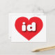 This postcard features a vibrant red heart containing the bold, white, rounded lower case letters id, a playful abbreviation for the state of Idaho, the gem state. The reverse side of the postcard is blank, awaiting your handwritten sentiments or customised text.