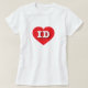 This t-shirt features a vibrant red heart containing the bold, white, upper case letters ID, the official abbreviation for the state of Idaho, the gem state.