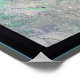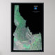 The state of Idaho from space is depicted in this glossy satellite map/print. The data for this satellite photo has been enhanced topographically to bring out terrain features. Additionally, this satellite map has county lines (no names), names of some major metropolitan areas and the state flag.