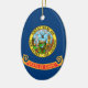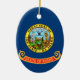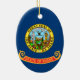 The flag of the state of Idaho consists of the state seal on a field of blue. The words “State of Idaho” appear in gold letters on a red and gold band below the seal. According to the official description of the flag, there should also be a fringe of gold around the edges, but a long time ago the versions of the flag were not shown until they remodeled the flag after War. The seal, in the centre of the flag, depicts a miner and a woman representing equality, liberty and justice. The symbols on the seal represent some of Idaho’s natural resources: mines, forests, farmland, and wildlife.