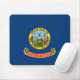 The flag of the state of Idaho consists of the state seal on a field of blue. The words “State of Idaho” appear in gold letters on a red and gold band below the seal. According to the official description of the flag, there should also be a fringe of gold around the edges, but a long time ago the versions of the flag were not shown until they remodeled the flag after War. The seal, in the centre of the flag, depicts a miner and a woman representing equality, liberty and justice. The symbols on the seal represent some of Idaho’s natural resources: mines, forests, farmland, and wildlife.