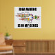 Showcase your wry genetic sense of humour with this poster featuring DNA replication along with the saying "Idea Making Is In My Genes". Memorable poster gift for all who love to come up with ideas!