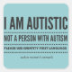 Text in dark grey capital letters: "I am autistic / Not a person with autism / Please use identity first language." Beneath that is the text "autism women's network."