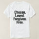 Declare what you are in Christ with this powerful and minimalist tee featuring the bold declaration: Chosen. Loved. Forgiven. Free. Designed for believers who want to wear their faith with confidence, this shirt is perfect for church, outreach, or everyday inspiration. It’s more than a shirt—it’s a statement of spiritual identity and freedom.