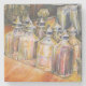 The coasters are gorgeous, a quality feel and heavy weight. They look like a precious archeological find. A rustic stone juxtaposed with a modern floral black and white print. I like the way the print goes slightly imperfect on the cut stone edges giving them a kind-of natural beauty.
