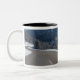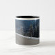 Idyllic empty road thrugh a winter landscape, Two-Tone coffee mug