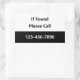 If Found Please Call Your Phone Number Black White Rectangular Sticker